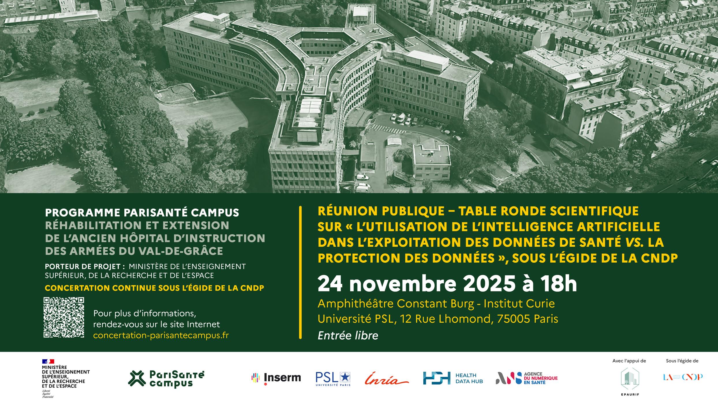 Dans le cadre de la concertation continue du projet PariSanté Campus, nous avons le plaisir de vous inviter à une table ronde consacrée à un sujet au cœur des enjeux de la santé numérique :